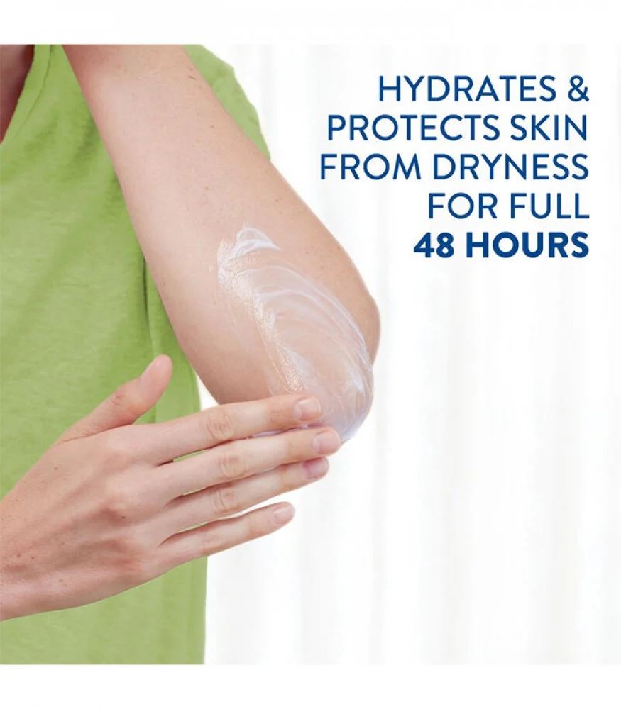 يعمل على ترطيب البشرة الجافة ويتركها ناعمة ومشرقة، إضافة إلى احتوائه على نظام متفوق من الترطيب لحفظ الماء أسفل طبقات الجلد ومنع فقدان الرطوبة، وبذلك يوفر نضارة طويلة الأمد للبشرة الجافة.